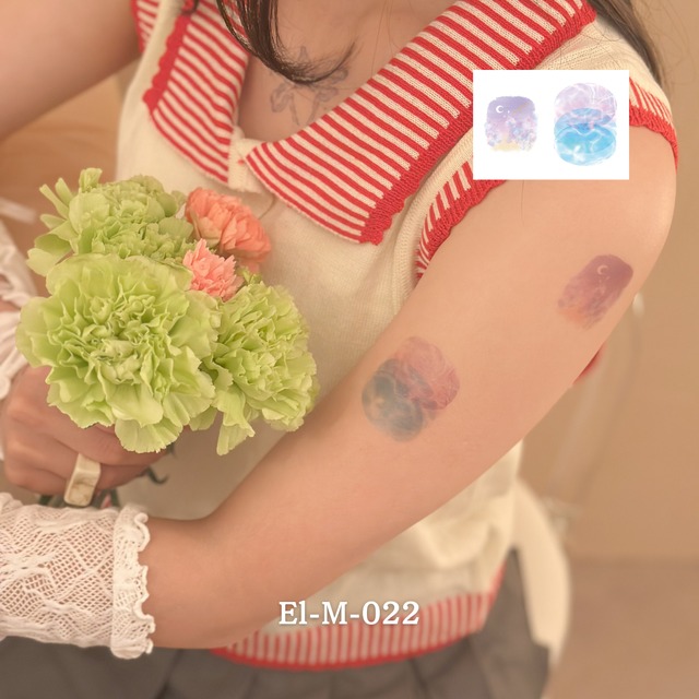 ふわりと舞う蝶と月のきらめき。 夜空に溶けるような、夢見心地のわたしに。 儚くも幻想的なモチーフたちが、肌にそっと物語を添えてくれる。 シートサイズ: W105×H74mm -------------------------------------- その日に剥がすこともできますが、擦らないよう大切にお過ごしいただくと部位によっては3日~1週間ほど持続します。 説明書を同梱しております。使用方法についてよく読みご確認の上ご使用ください。