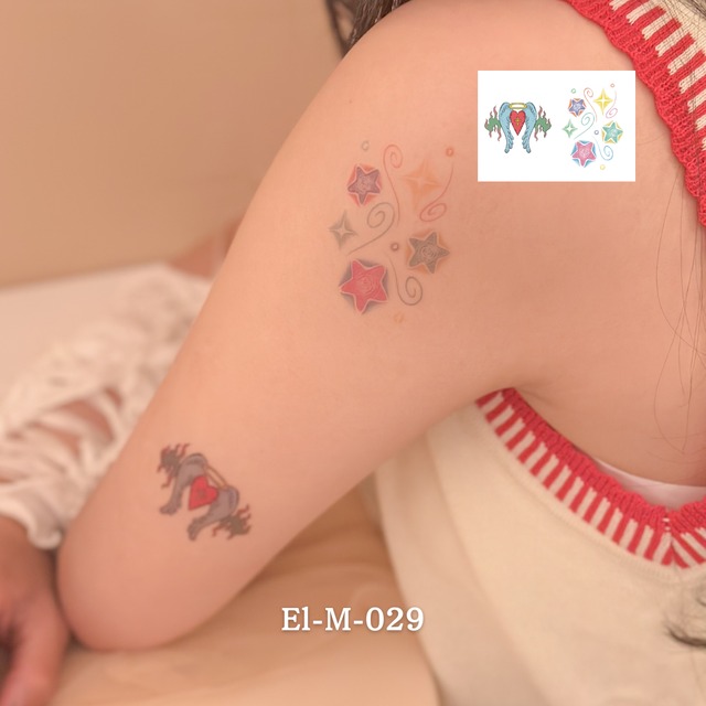 星やハート、月の下に咲く花… どれも力を抜いて描かれた“ゆるかわ”なタッチで、素肌にそっと物語のかけらを乗せてくれる。 気分をほんの少し、やさしくしてくれるミニモチーフたち。 シートサイズ: W105×H74mm -------------------------------------- その日に剥がすこともできますが、擦らないよう大切にお過ごしいただくと部位によっては3日~1週間ほど持続します。 説明書を同梱しております。使用方法についてよく読みご確認の上ご使用ください。