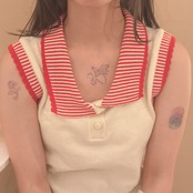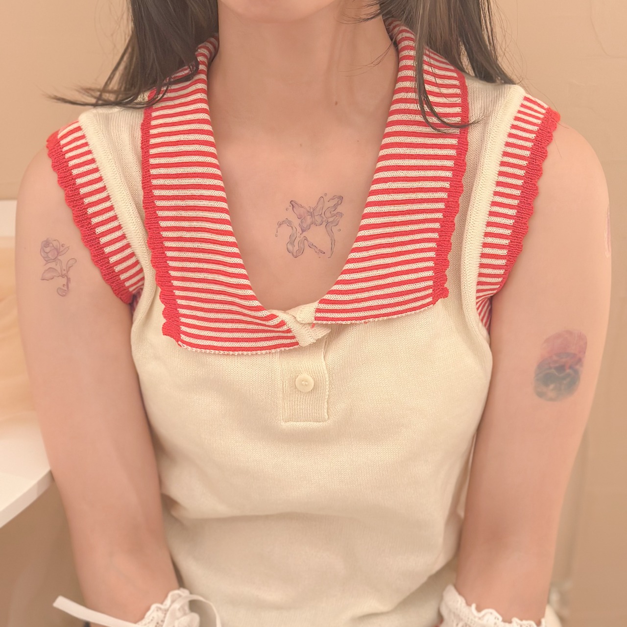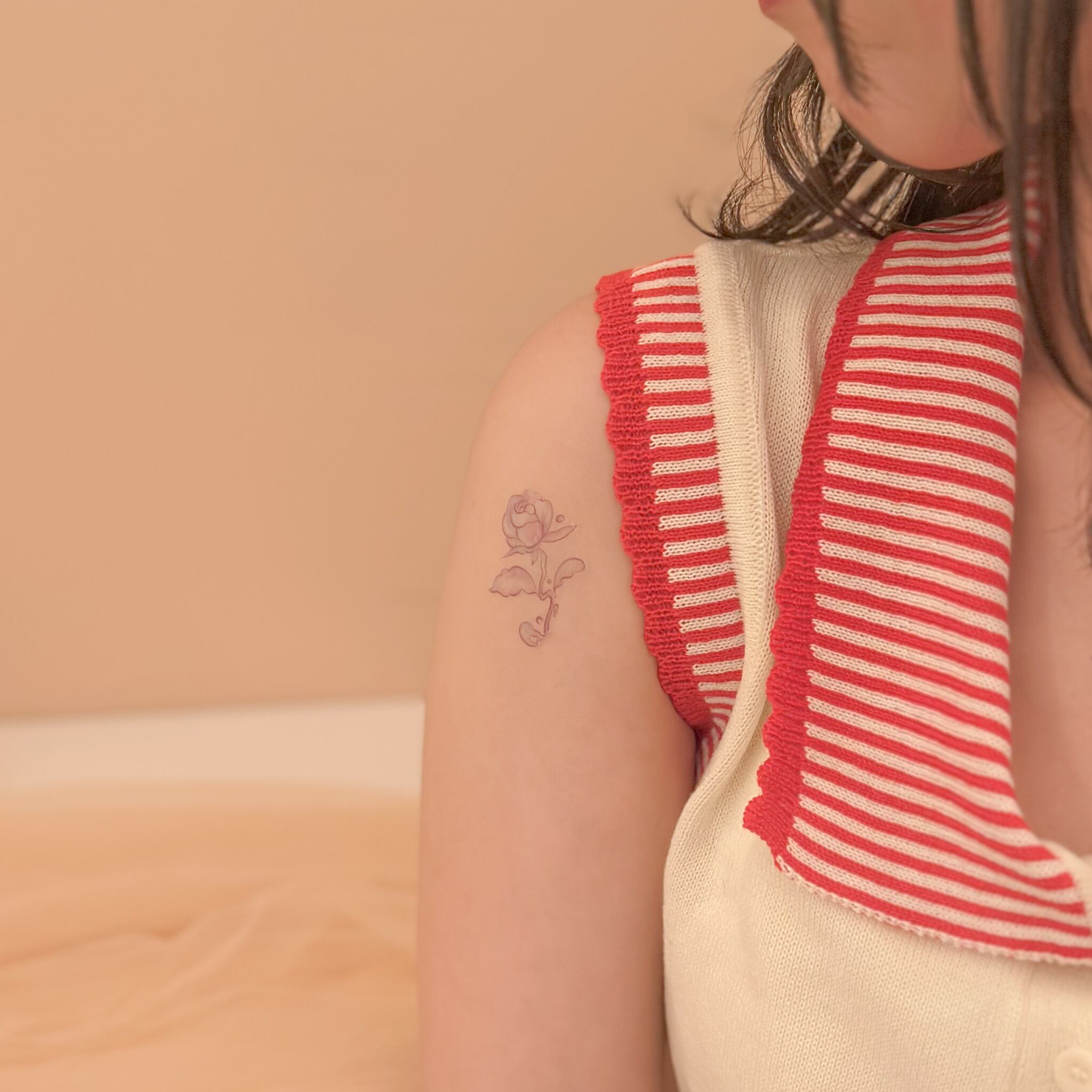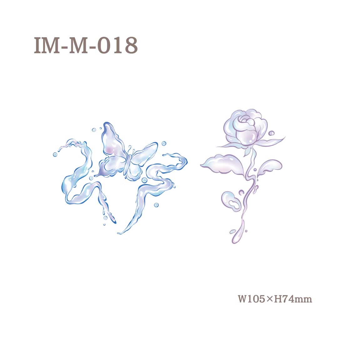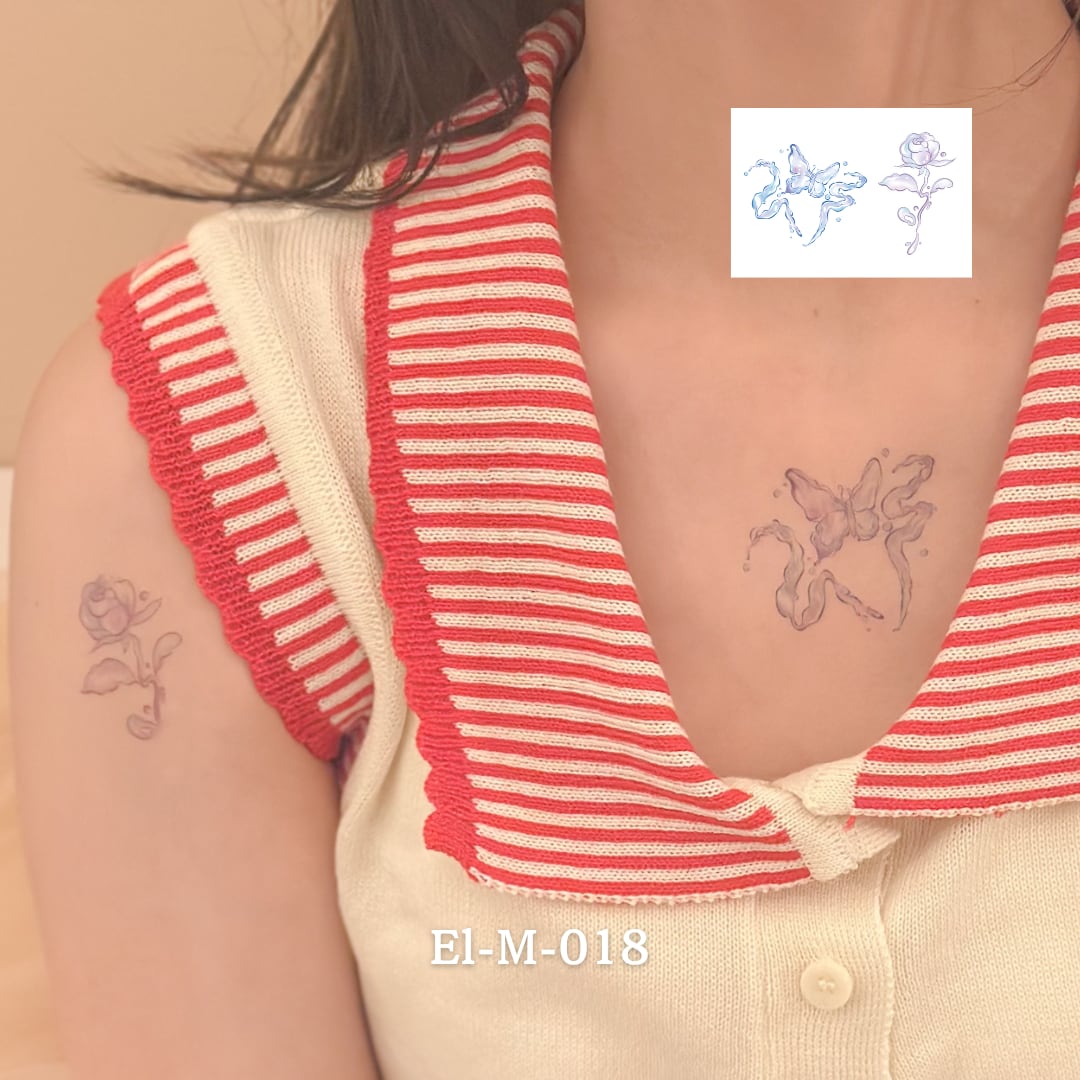 水のきらめきをまとった蝶と薔薇が、肌の上でふわりと物語を紡ぐ。