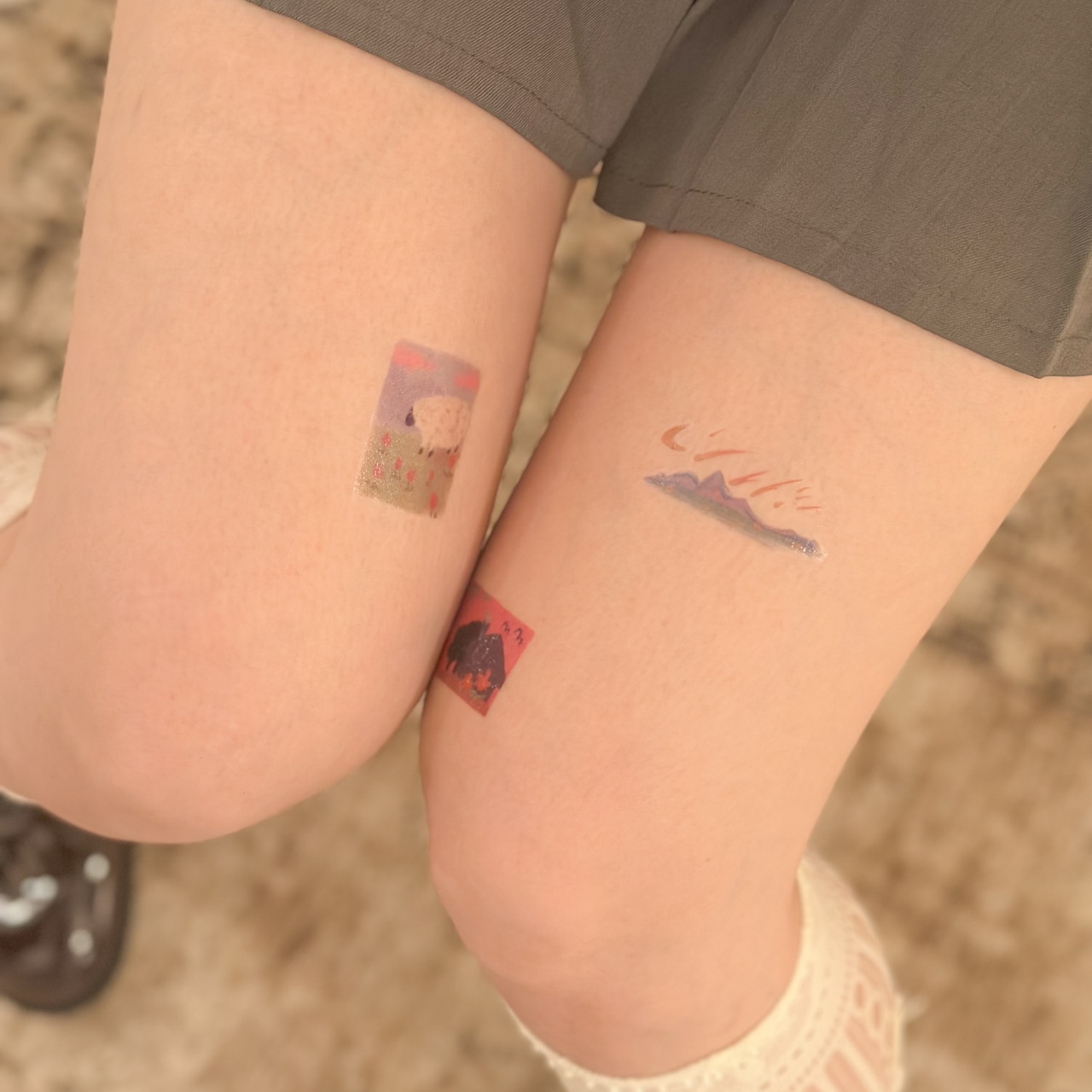 その日に剥がすこともできますが、擦らないよう大切にお過ごしいただくと部位によっては3日~1週間ほど持続します。