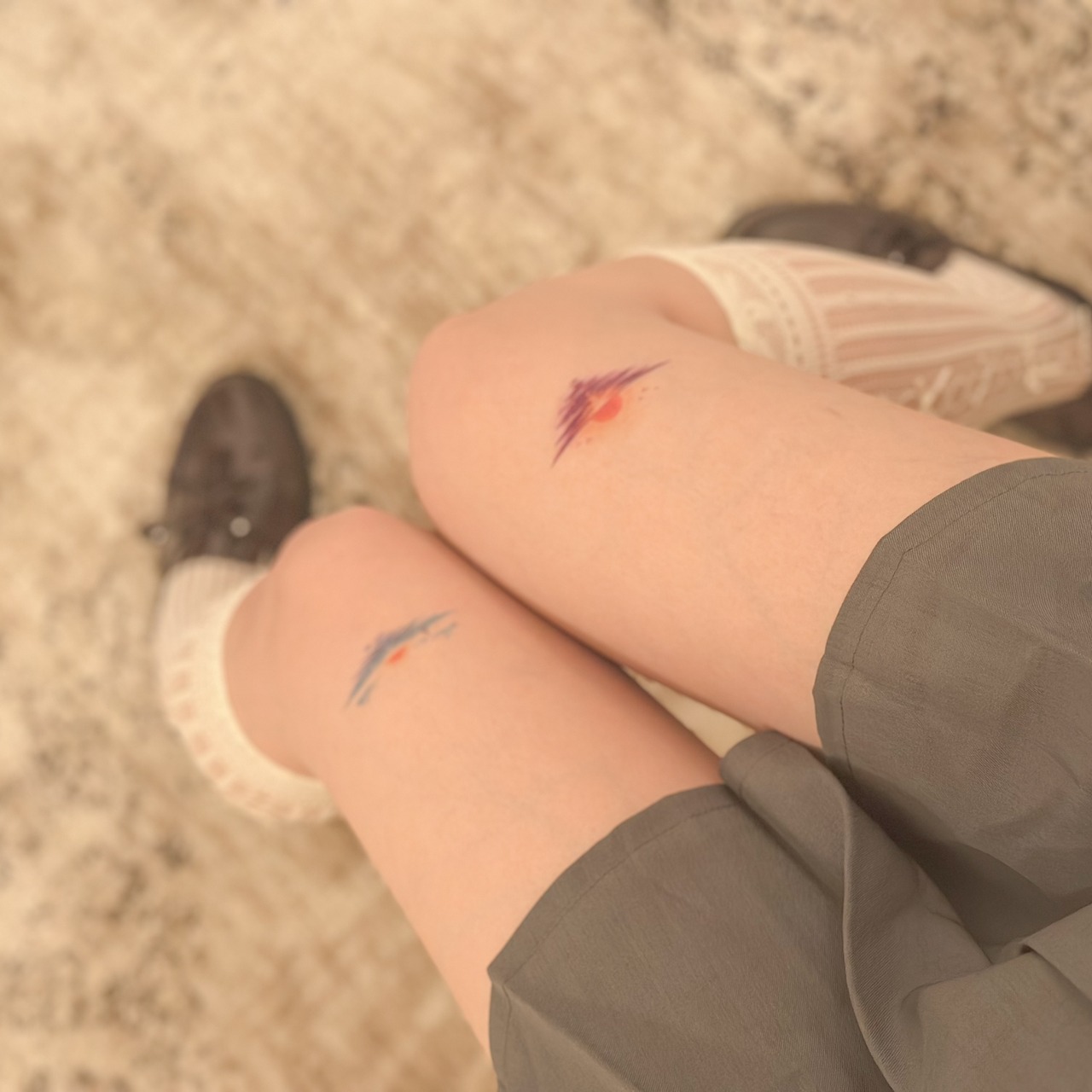 その日に剥がすこともできますが、擦らないよう大切にお過ごしいただくと部位によっては3日~1週間ほど持続します。