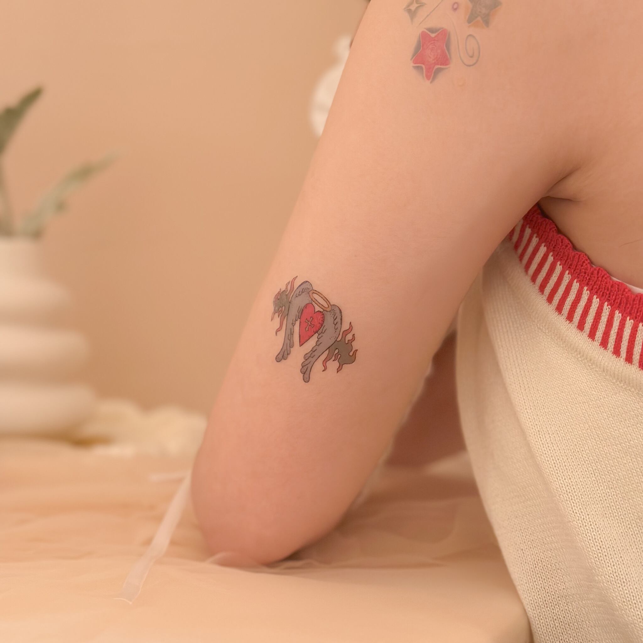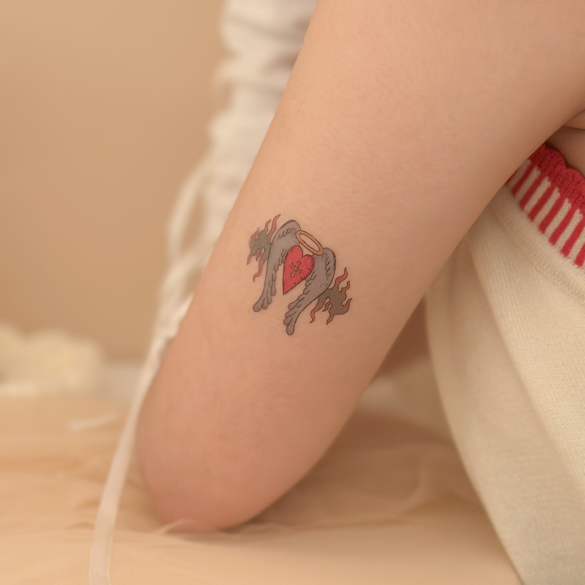 羽が生えた燃えるハートは、ちょっぴり強気で愛らしいモチーフ。
